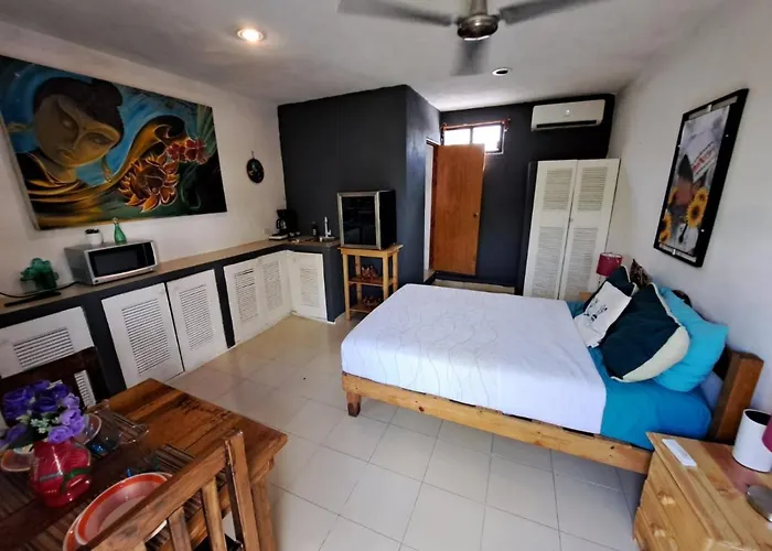 Puedes llegar al centro de Playa del Carmen en 20, y desde allí podrás visitar lugares de interés natural, como la Punta Esmeralda, que se encuentra a unos 10 minutos en coche. Lugares de interés cultural de la zona son el Portal Maya (2 km) y el Museo 3D de las Maravillas (2,1 km). Las atracciones familiares cercanas incluyen el Acuario de Playa, no muy lejos del hotel Hotelito 54. El Aeropuerto Nacional de Playa del Carmen está a 5 km de este hotel, y llegar allí en coche lleva 6 minutos.